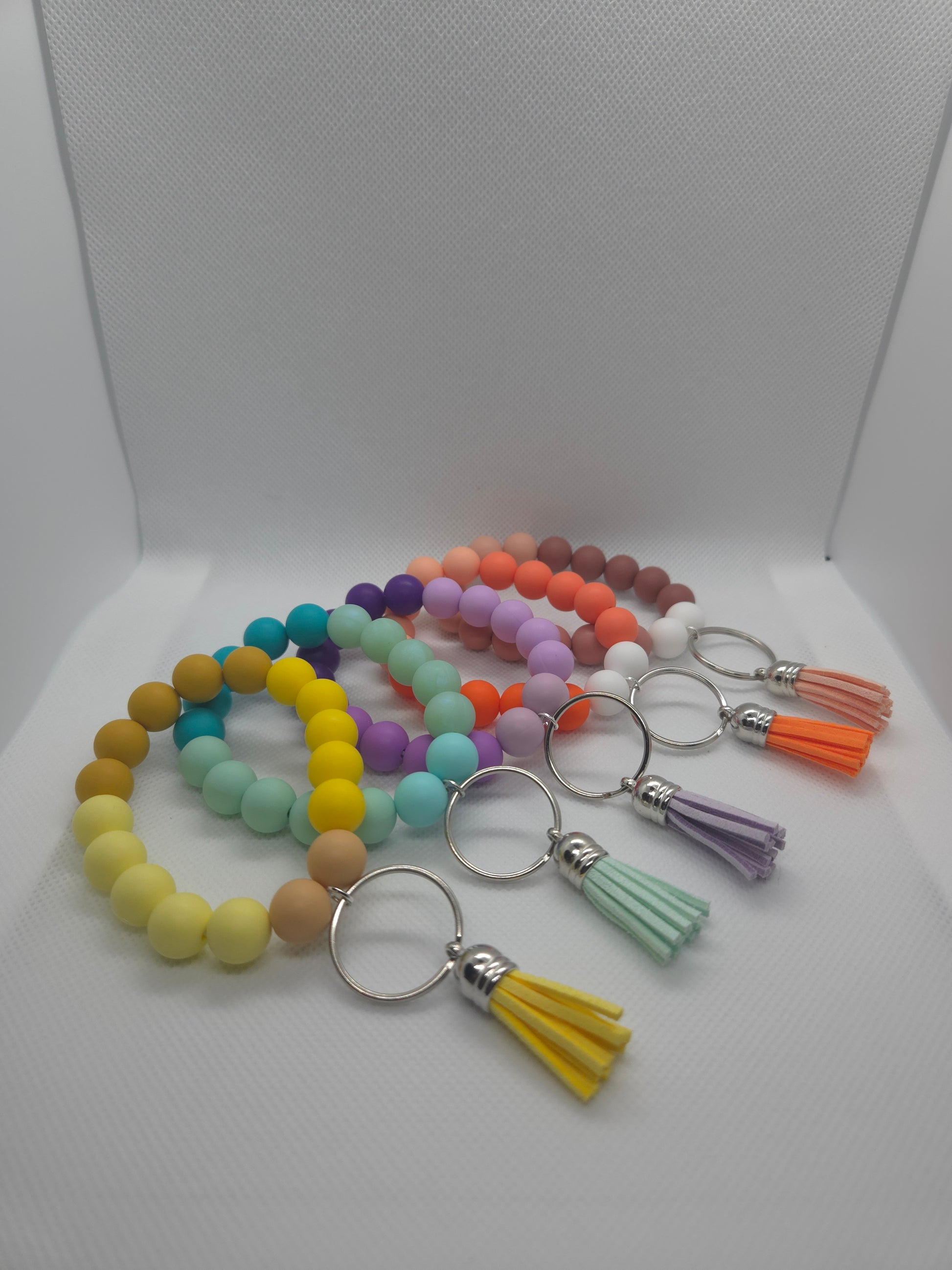 This silicone beads wristlet features a stylish design and durable material, offering a convenient size for everyday use. Perfect for keeping essentials close at hand with comfort and ease.